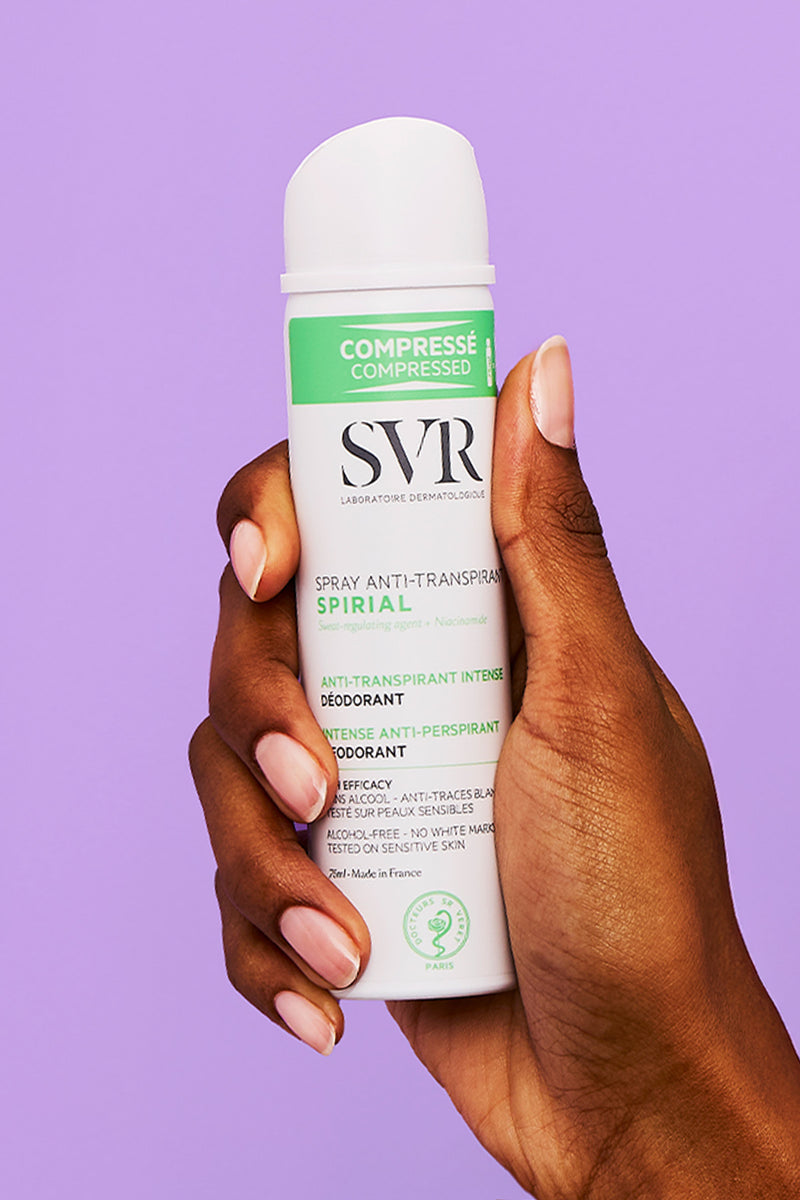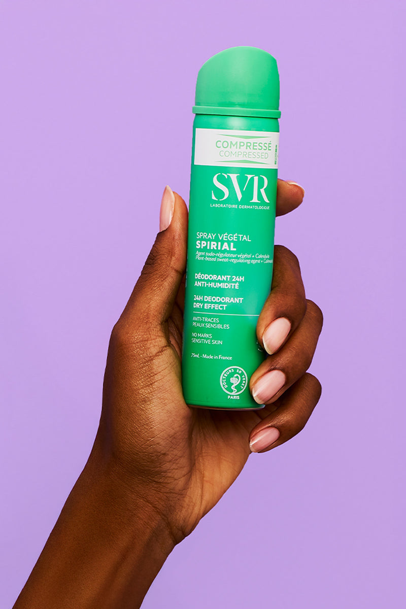 Spirial é a gama desodorizante e antitranspirante 48h da marca SVR. Os produtos são formulados de uma maneira especial para se adaptarem aos diferentes tipos de transpiração. Alguns deles são isentos de sais de alumínio para uma transpiração normal, outros têm apenas a dose certa para uma transpiração normal a excessiva.🫶